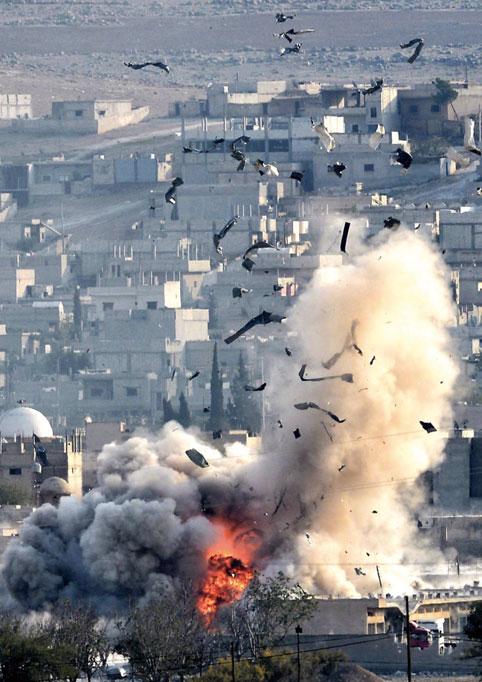 Siria. Explosión en el enclave kurdo de Kobani durante un ataque de fuerzas militares estadounidenses contra Estado Islámico. (EFE)