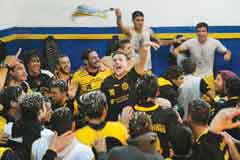 Delirio. Festejo de Flandria en el vestuario. (Télam)