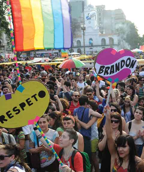 Orgullo gay. En el centro porteño, como en decenas de ciudades del país, la marcha de la diversidad gana participantes año a año. (Fernando Sturla/Télam/RVE)