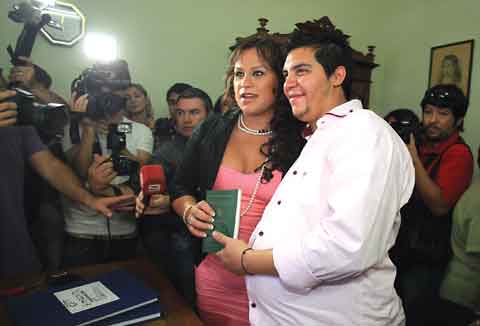 Entre Ríos. Karen y Alexis, ambos trans, se casaron en 2013. Él estaba embarazado. (STR/AFP/Dachary)
