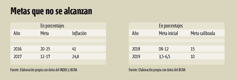 Esta evidencia obligó a «recalibrar» la meta de inflación. El anuncio fue realizado por el ministro de Hacienda el 28 de diciembre pasado en conferencia de prensa, donde estuvo acompañado por el jefe de Gabinete, Marcos Peña, el ministro de Finanzas, Luis Caputo, y el titular del BCRA. El gesto adusto de Sturzenegger lo decía todo: la flexibilización de la meta inflacionaria era una derrota personal. Cabe recordar que a mediados de mayo de 2017, la autoridad monetaria había declarado: «No vamos a cambiar la meta, porque cambiar una meta es no tener meta». Apenas siete meses más tarde, el parámetro se elevó alrededor del 50%, saltando del 8-12% al 15% para este año, y del 3,5-6,5% al 10% para el próximo.