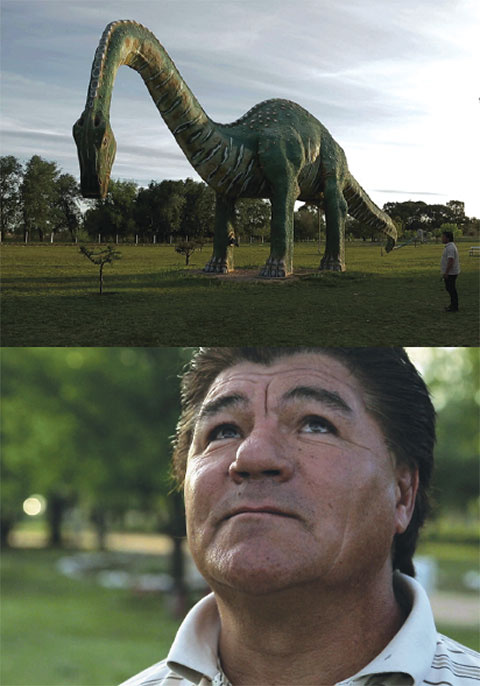 –Viajábamos en auto desde Santa Rosa a General Pico para hacer una proyección de mi película sobre Carlos Fuentealba, organizada por la Unión de Trabajadores de la Educación de La Pampa, con Sandra Rodríguez, su compañera, y con un trabajador del sindicato docente, cuando este me preguntó si conocía el Parque de los dinosaurios. Le contesté que no, así que hicimos una parada en la localidad de Eduardo Castex. Dejamos atrás la ruta unos 30 metros y no podía creer lo que estaba viendo: un predio enorme, en medio de la nada, con unas 30 esculturas de dinosaurios. Era muy raro. ¿Qué hace este parque, con estos dinosaurios, en este lugar? ¿Quiénes vienen a visitarlo? Y, al mismo tiempo, veía esas esculturas con asombro: algunas son muy impactantes, están hechas en tamaño real. Entonces averigüé lo que pude y, poco tiempo después, me encontré con el escultor, y, en esa primera charla, empezó este proyecto.