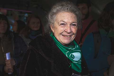 Ana González y Susana Gamba vienen luchando por la legalización del aborto desde hace varias décadas. «42 años», detalla Susana. «Las chicas jovencitas nos piden sacarnos fotos, nos dicen “gracias, gracias por estar”. Las jóvenes han dado un salto enorme que transforma la sociedad, van a seguir luchando por la igualdad y por la justicia para todos y todas. Y todes», aclara.