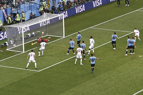 Cuartos de final. Gol de Varane a Uruguay. (EISELE/AFP/DACHARY)