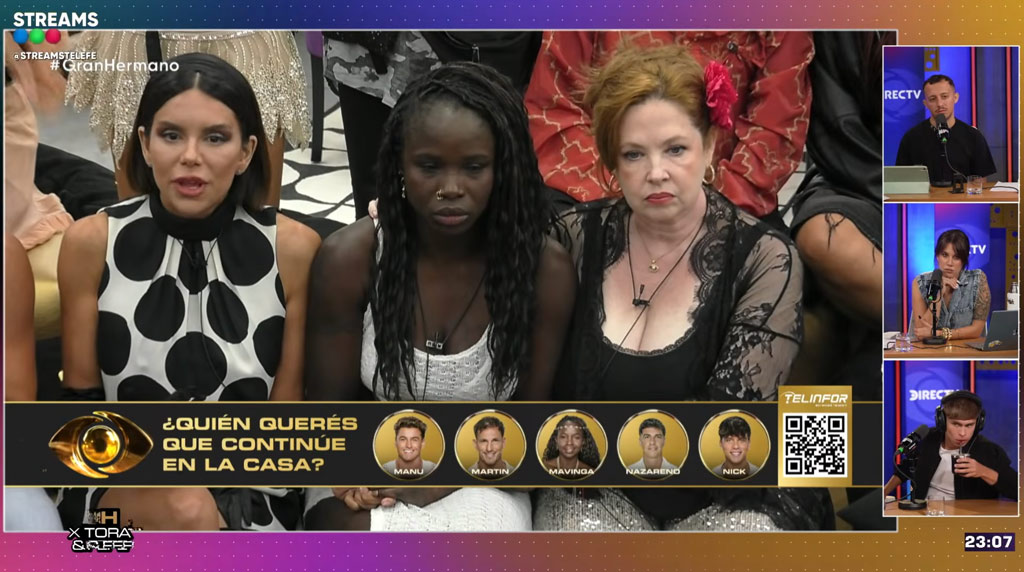 Para que el reality se imponga –eso sí– tiene que haber tonos y volumen altos, personalidades y estampas bien identificables, porque este género vive y vibra en el plano de lo icónico: la mostración de esas 24 horas de intimidad que tardaron en llegar pero que, por estos días, se ofrece como un plus de DirecTV, a sabiendas de que venía habiendo poco baño, poco culo, poca teta, y la barra inflamada de hoters que asola al streaming –ese eslabón infaltable en tiempos de viraje hacia un nuevo star system digital– empezó a pedir a gritos más pecho de Nick y de Zunino, más culo de Lola y de Luana, a la que las noticias, en otro segmento, le habrían atribuido cercanía con una banda de trata liderada por un influencer que ya habría sido condenado por ese caso. Por si fuera poco el ex de Luana entró en la flamante sección «Derecho a réplica», y le dijo de todo, por haberlo dejado y humillado en el mass media. Ella amenazó con irse porque «así no se expone a una mujer». El «vivo» se roba la adrenalina de la jornada, en cada gala, y MasterChef se empequeñece ante estos ambientes rugientes que Santiago sabe arengar, y muy bien, convirtiendo a Wanda en una aprendiz de aquello que a GH no le falta: «conciencia de big show».
