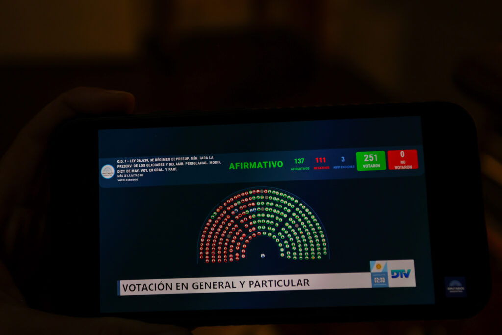 Con cerca de 140 votos afirmativos, la Cámara de Diputados aprobó la reforma de la Ley de Glaciares. Desde el año pasado, el Gobierno de Javier Milei puja por la modificación de la norma 26.639/10 para claramente, beneficiar y darle vía libre a las grandes corporaciones mineras extranjeras que ya desarrollan actividades en el país y propiciar la llegada de otras. Poco les importó a los legisladores que votaron afirmativamente los argumentos de más de 100.000 personas de todo el país que se inscribieron en la Audiencia pública organizada por la Cámara, aunque finalmente solo 200 fueron escuchadas. Con grandes movilizaciones de comunidades y movimientos socioambientales a lo largo y ancho del territorio nacional se expresó el rechazo a la iniciativa gubernamental al grito de «La Ley de Glaciares no se toca». La norma, sancionada en 2010 al calor de los debates sobre las explotaciones mineras, tenía como objetivo no permitir que el avance de las grandes corporaciones mineras realizaran sus explotaciones en los ambientes glaciares y periglaciares que abastecen los ríos que alimentan y nutren a la flora, la fauna y a las comunidades. Los glaciares son una fuente de agua dulce y potable para al menos 7 millones de personas y centenares de especies biodiversas de todo el país. Con la modificación de la ley todo esto está en peligro.