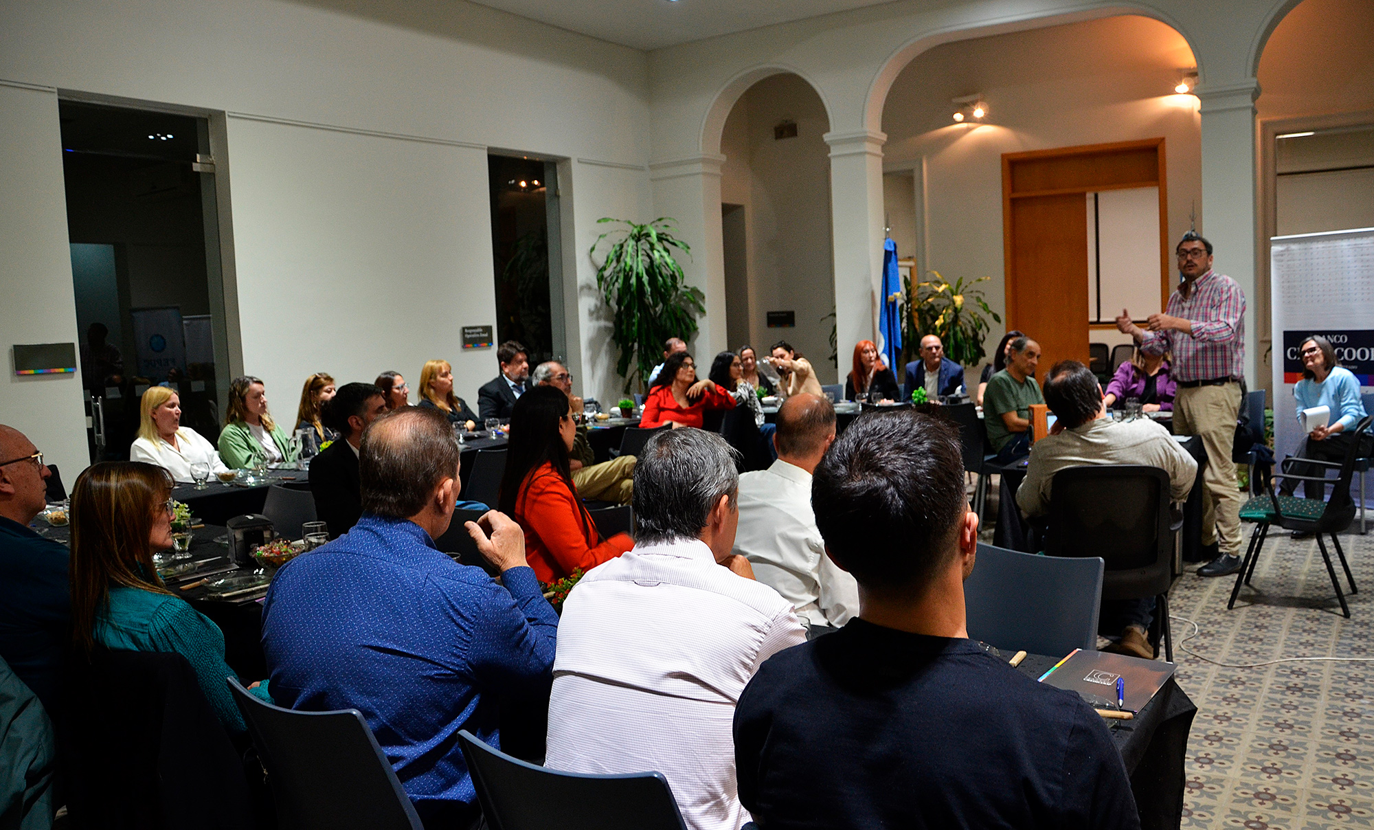 El evento comenzó con palabras de bienvenida de la gerenta de la filial anfitriona, Laura Gabarini, quien agradeció la nutrida concurrencia de los miembros de FEPUC, entidad vinculada a la filial desde el año 2016. «Los convocamos hoy más allá de ofrecer prestaciones de servicios financieros y nuestras propuestas especiales para entidades profesionales –remarcó Gabarini– porque queremos que los encuentros en el banco sirvan como espacios de conocimiento y reflexión, para relacionarnos con reciprocidad en función de nuestros valores compartidos». Seguidamente se proyectó un video institucional del Banco Credicoop.