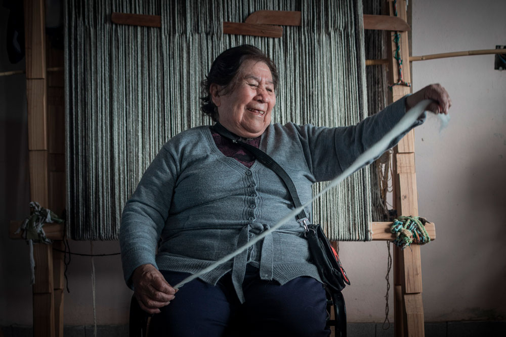 «Caminos de tierra, viento, frío, desolación. Estamos en el medio de la estepa, al pie de la Meseta de Somuncura, la vegetación es escasa. Todo lo construimos nosotras», dice Sandra. Y sigue: «Cuando me acerqué al grupo no sabía de qué se trataba el cooperativismo. Me formé en la práctica: hilo y me relaciono con personas desde los 13 años. Con el tiempo aprendí a comunicarme y a moldear mi paciencia, a vincularme con mujeres diversas y con sus familias».
