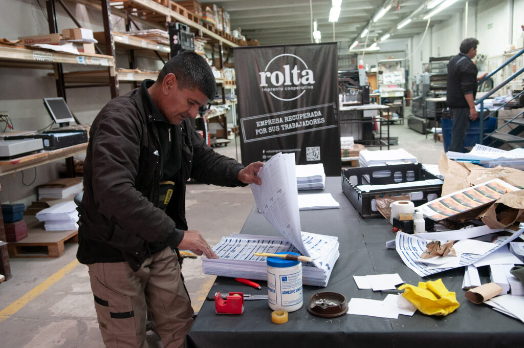 Rolta tiene más de 40 años en el barrio de Balvanera, Ciudad de Buenos Aires. Su historia es la de muchas empresas recuperadas de Argentina: tras la quiebra presentada por los dueños originales en julio de 2020, fue rescatada por un grupo de trabajadores en medio de la pandemia. Continuaron con el trabajo de siempre, haciendo impresiones de todo tipo: libros, revistas, catálogos, agendas, cuadernos, juegos de mesa, figuritas. También realizan packagings de estuches de CD, contenedores, blisters y cajas, entre otros productos. «Fuimos detrás de un sueño: mantener la fuente laboral. Afortunadamente logramos reinventarnos y convertirnos en cooperativa», asegura Viviana Britez, una de las seis personas que se quedó en Rolta para formar la cooperativa.