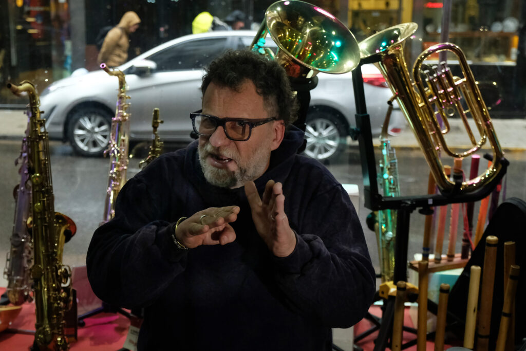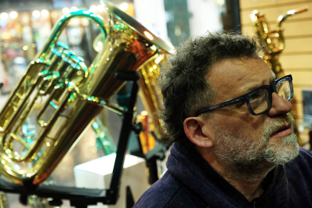 Es un día de lluvia y frío. A través de la vidriera se ven las personas corriendo debajo del aguacero. Los paraguas se doblan por la fuerza del viento. Gillespi está en una pequeña casa de música donde venden instrumentos de viento, un refugio que tiene en el microcentro. Abraza una trompeta Atlas. Luego sopla y toca unas notas, un fraseo agudo que se mantiene flotando suavemente en el aire. Para poder hacerlo con fluidez, Gillespi estudia todos los días. «Es un instrumento cruel. Te vas diez días a Santa Teresita de vacaciones y, cuando volvés, tenés que empezar todo de nuevo, si no no te sale nada», dice, sentado sobre el amplificador de una guitarra.