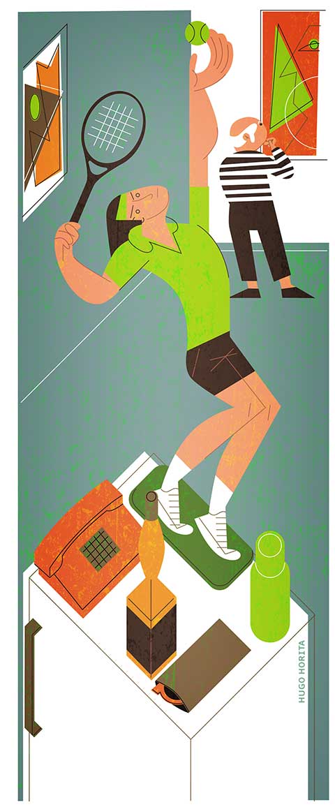 Sergio lo llamó para contarle algo que lo estaba torturando íntimamente –así se expresó–. Sonó el teléfono la noche anterior en la casa donde viven Picasso, su padre y su hermana. En un cuarto duermen los dos hombres, en el otro Susana. El teléfono es un aparato cuadrado y viejo, naranja. Está puesto arriba de la heladera, un lugar extraño porque ha venido juntando –el techo de la heladera– un montón de objetos que dan vueltas por la casa: un desodorante a bolita, un tenista de plástico captado justo en el momento de sacar, un estuche de lentes de Susana, una botellita enana de whisky, restos de una civilización doméstica.