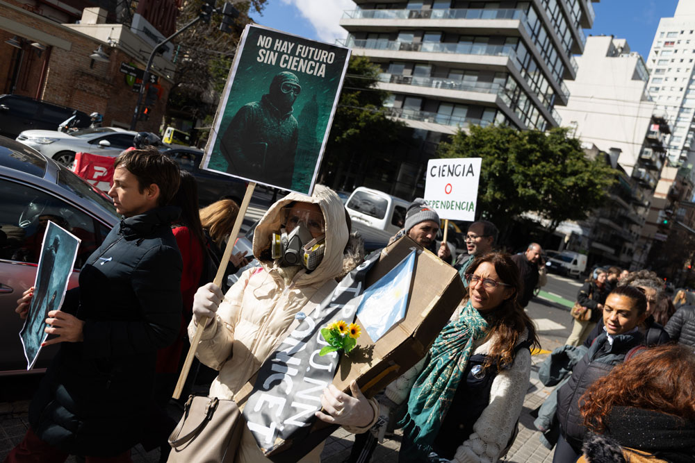 Contra el ajuste. Marcha en rechazo al recorte de partidas para ciencia y tecnología en mayo de 2025.