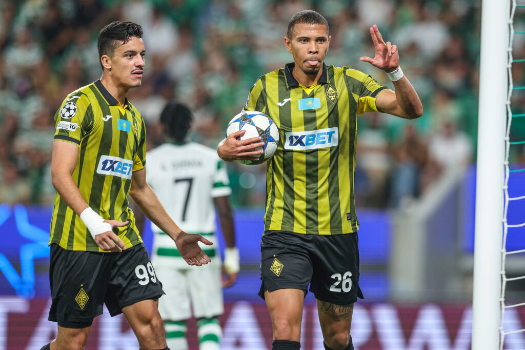 Lisboa. Jugadores del FC Kairat Almaty, uno de los equipos más modestos de la Champions, celebran la única conquista en la derrota 4 a 1 ante el Sporting Clube de Portugal.
