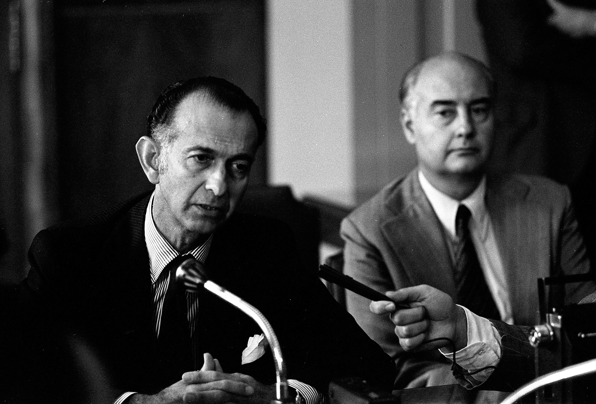 Mentores. José Alfredo Martínez de Hoz junto a Juan Alemann, principales responsables del plan económico de la dictadura de Videla.