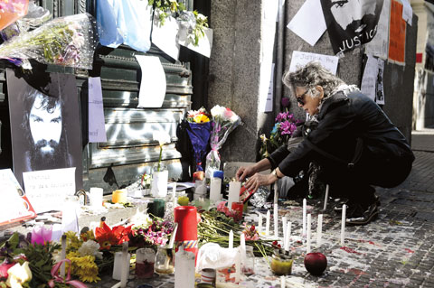 Altar. Homenaje popular a la memoria de Santiago Maldonado frente a la morgue judicial. (Dyn)