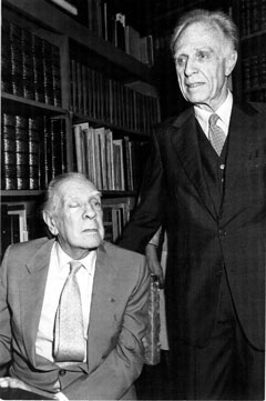 Instantes. Un retrato de la década del 60, con su amigo Bioy Casares y con María Kodama. (Fototeca Rogero C.I.)