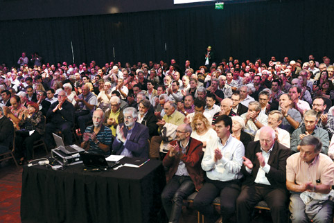Unos 800 funcionarios, consejeros y dirigentes participaron del encuentro institucional realizado por Credicoop en el complejo Parque Norte de la ciudad de Buenos Aires, en el marco del 37º aniversario del banco cooperativo. Encabezada por el presidente de la institución, Carlos Heller, la mesa que encabezó la jornada estuvo integrada además por Néstor Callegari, protesorero 1º; Horacio Raffo Quintana, prosecretario 1º; Carlos Louzán, tesorero; Horacio Giura, vicepresidente 2º; Gerardo Galmés, gerente general; Melchor Cortés, secretario; Ricardo Sapei, vicepresidente 1º; Marcelo De Lorenzi, protesorero 2º; y Edgardo Bozzolo, prosecretario 2º. Al inicio del encuentro, Heller leyó el saludo enviado por el Instituto Movilizador para la ocasión: «Como digno heredero de nuestro movimiento –señaló el escrito– el Banco Credicoop ha demostrado la potencialidad del cooperativismo aplicado a la gestión eficiente y democrática de la actividad financiera (…) La riquísima experiencia acumulada hasta el presente, así como la fortaleza lograda con vuestro Plan Integral de Gestión, constituyen una plataforma de extraordinaria solidez para seguir avanzando en esta etapa de plena madurez en las complejas y desafiantes circunstancias que se vienen». El imfc estuvo representado en la jornada por su presidente, Edgardo Form. También estuvieron presentes, entre otros dirigentes del movimiento nucleado en el Instituto Movilizador, Juan Torres, presidente de Residencias Cooperativas de Turismo; Rubén Vázquez, presidente de Cabal; Jorge Lorenzo, presidente de Segurcoop; Ángel Petriella, presidente de idelcoop; y Juan Carlos Junio, director del Centro Cultural de la Cooperación.